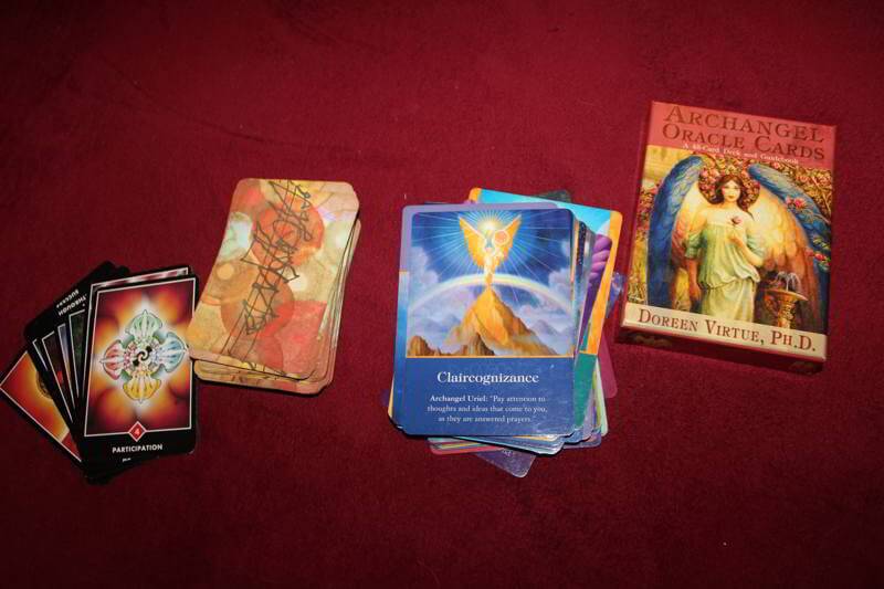 This week’s forecast features the [easyazon_link identifier=”0312117337″ locale=”US” tag=”afoolsjourney-20″]Osho Zen Tarot[/easyazon_link] and [easyazon_link identifier=”1401902480″ locale=”US” tag=”afoolsjourney-20″]Archangel Oracle Cards[/easyazon_link]. If you dig these, you’d probably like Dixie’s book, [easyazon_link identifier=”B00D2B7NKO” locale=”US” tag=”afoolsjourney-20″]Everyday Tarot Archives[/easyazon_link], or better yet, a private consult. 😉